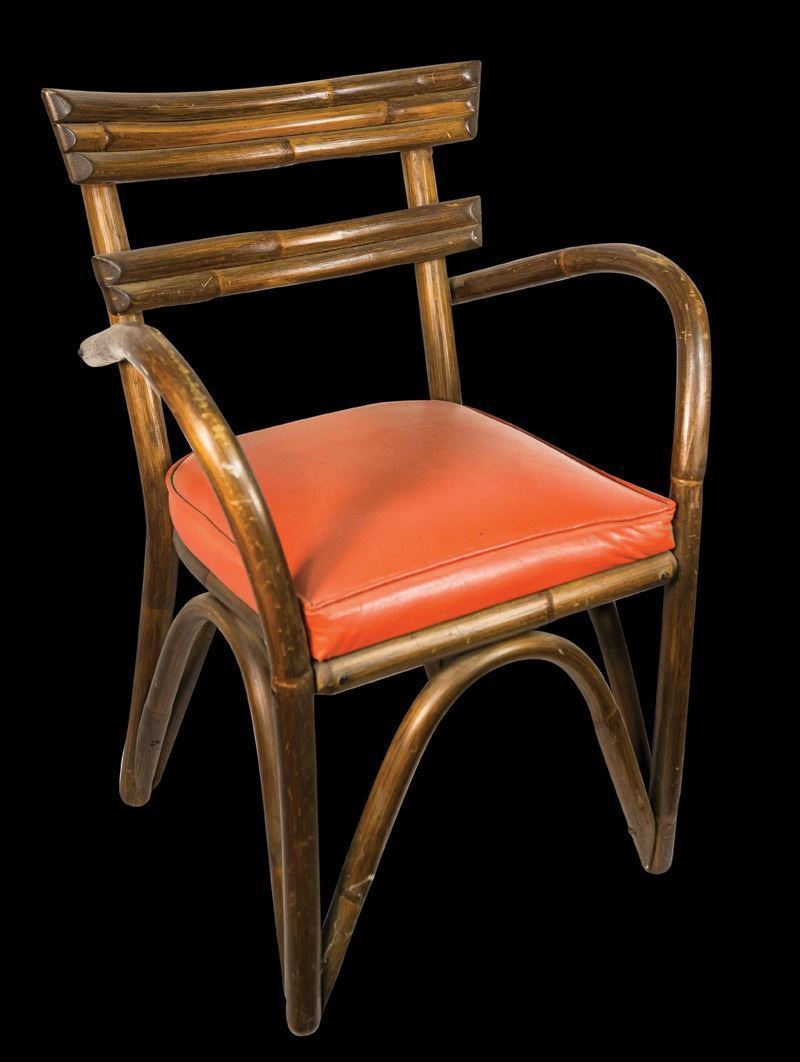 (1960s) An OA Polynesian rattan restaurant chair - this is an OA Warehouse Showroom display sample.32"x22"x19".VG+ with typical wear from use.