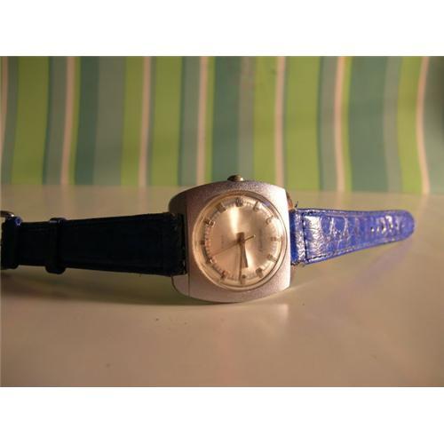 AWESOME VINTAGE RETRO STYLE 2-TONE STAINLESS STEEL SQUARE CASE(BRUSHED AND SMOOTH)WITH BLUE WRITING AND MINUTE MARKERS GENT'S TIMEX ELECTRONIC IN EXCELLENT CONDITION BOTH MECHANICALLY AND COSMETICALLY WITH MATCHING BLUE CROC-LEATHER STRAP WITH CLASSIC STAINLESS STEEL TANG BUCKLE!