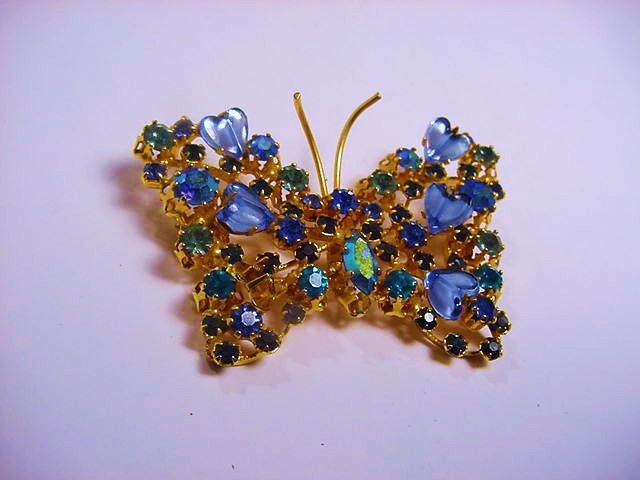 VINTAGE RHINESTONE BUTTERFLY PIN VERY GOOD CONDITION