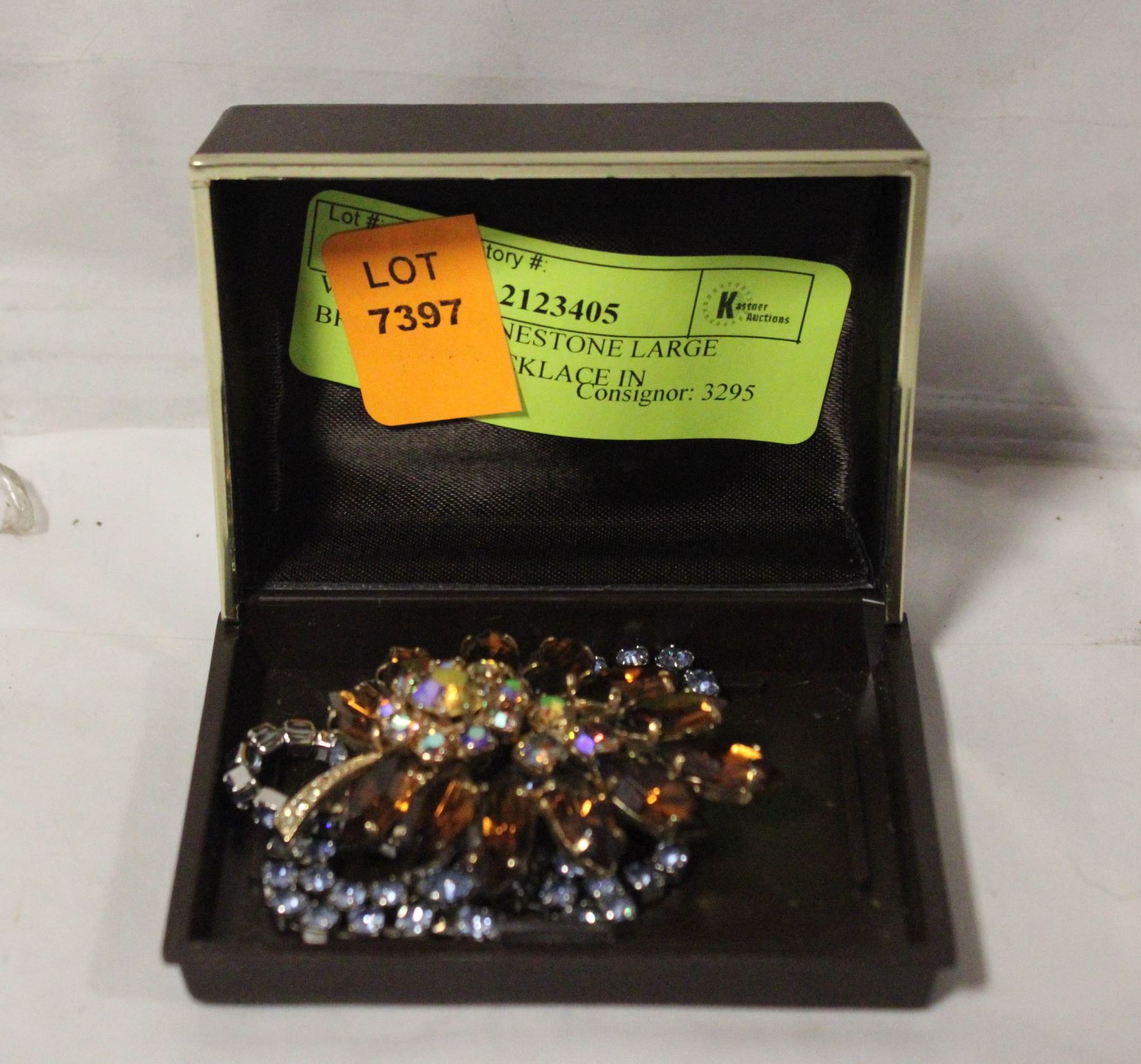 VINTAGE RHINESTONE LARGE BROOCH & NECKLACE IN