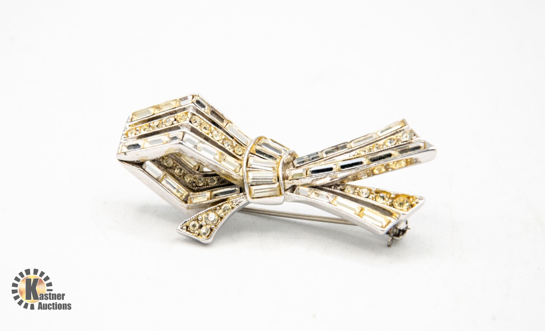 VINTAGE RHINESTONE RIBBON STYLE BROOCH