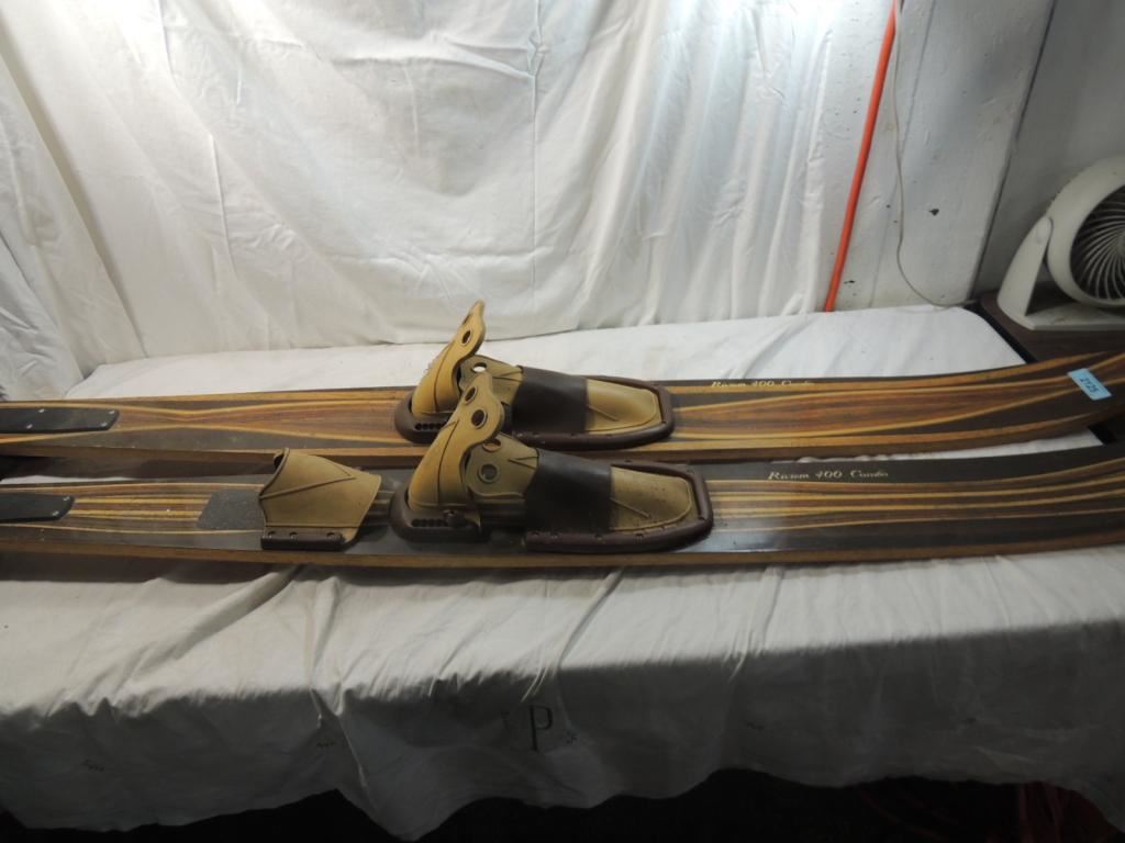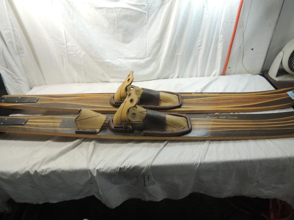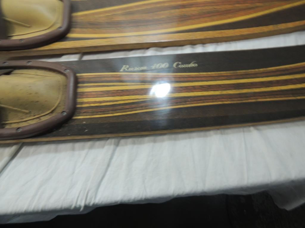 VINTAGE WATER SKIS, VINTAGE RIVERA 400 COMBO WOODEN SKIS, COLLECTIBLE, WATER SPORTS, ACCESSORIES, AS SHOWN SEE PHOTO FOR MORE DETAILS.