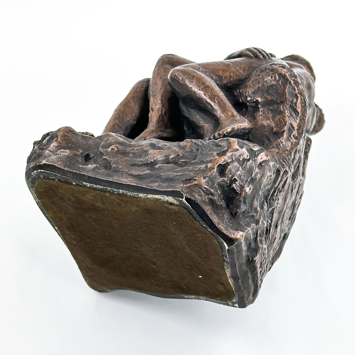 #8004 - NUDE 70’S ERA KISSING COUPLE BY AUSTIN PRODUCTIONS. BRUSHED BRONZE CHALKWARE ART SCULPTURE RODIN’S ‘THE KISS’. EXCELLENT VINTAGE CONDITION WITH NO CRACKS, CHIPS OR REPAIRS. MEASURES: 10.25” (26 CM) TALL BY 6” (15 CM) WIDE AND 6” (15 CM) DEEP