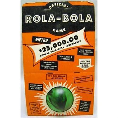 Vintage 1950's Rola-Bola Game w/Ball, in the original box, has the ball and a 21" scoring court, ball is marbelized plastic..