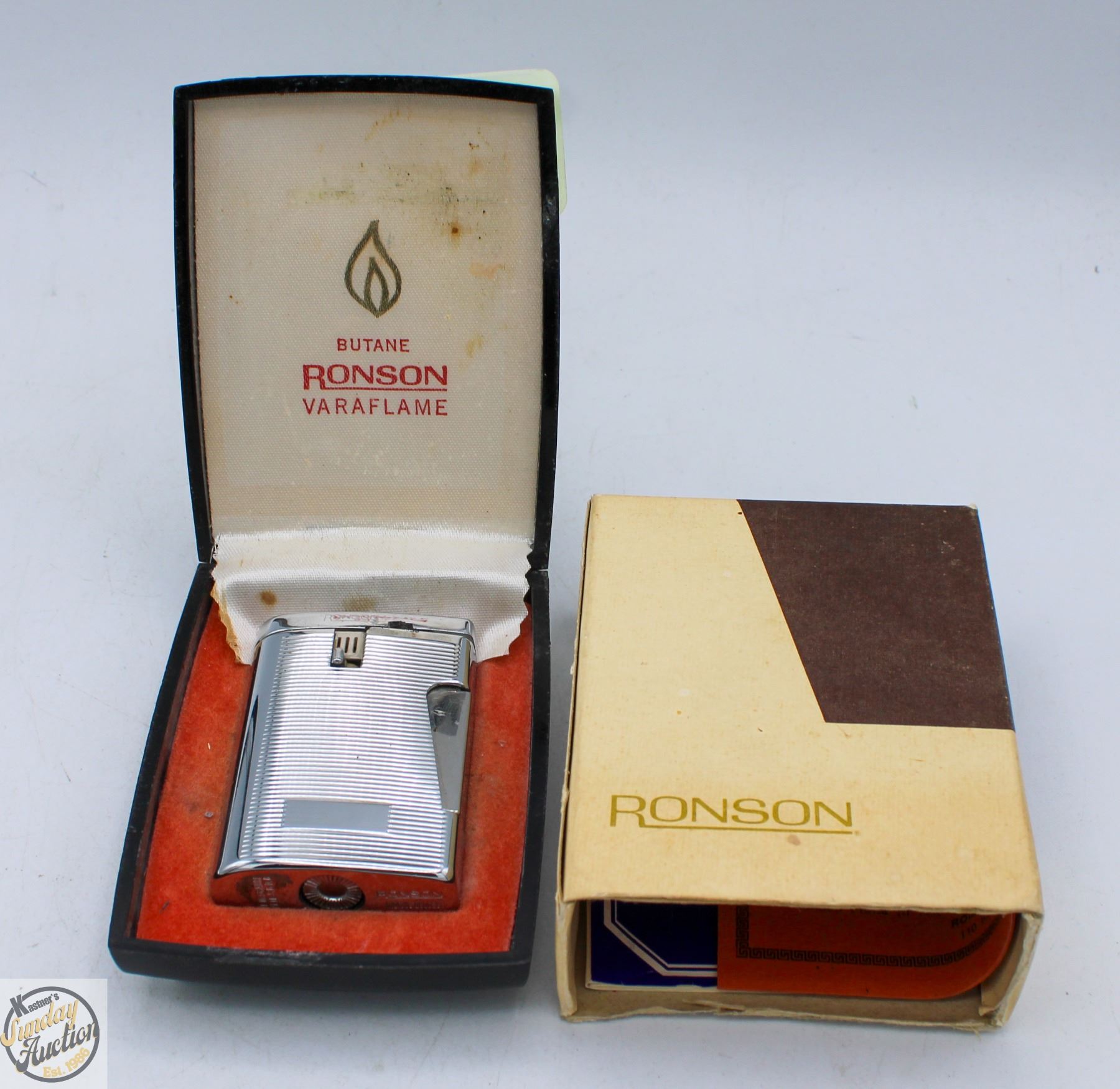 VINTAGE RONSON BUTANE LIGHTER WITH CASE AND BOX