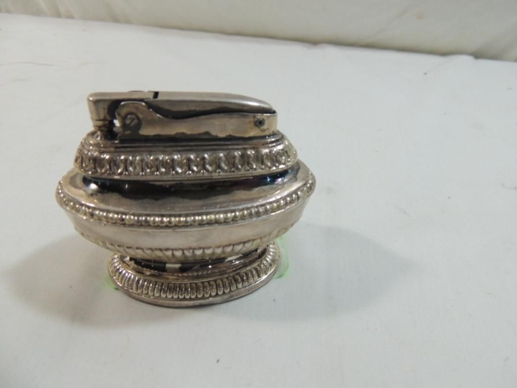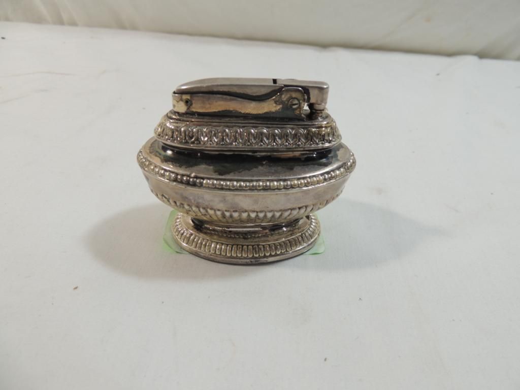 VINTAGE RONSON QUEEN ANNE TABLE LIGHTER. SILVERTONE TABLE LIGHTER. ELEGANT COLLECTIBLE. AS SHOWN SEE PHOTO FOR MORE DETAILS.