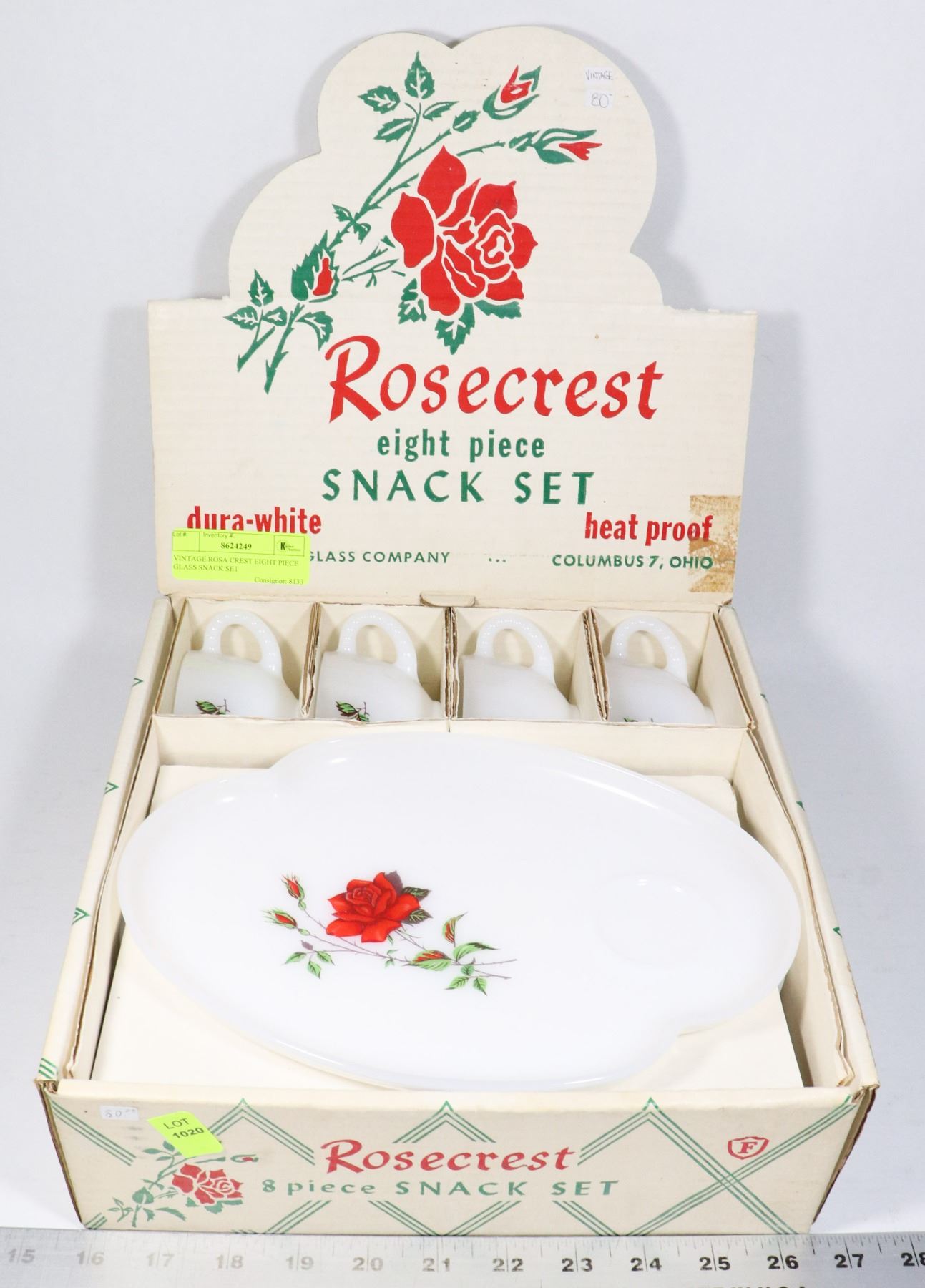 VINTAGE ROSA CREST EIGHT PIECE GLASS SNACK SET