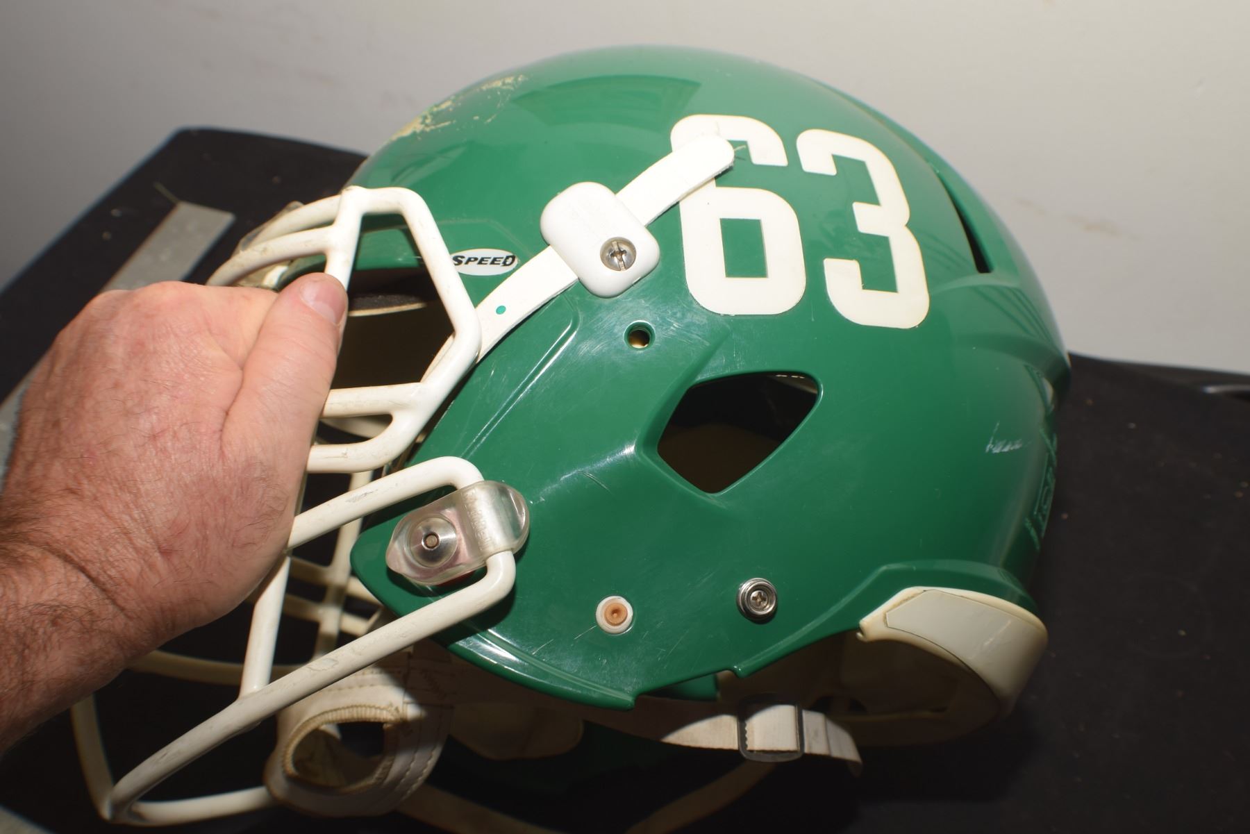 VINTAGE ROUGHRIDERS LINEMAN PRACTISE HELMET , HUGE / DAN CLARK ?