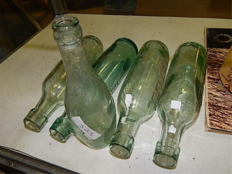 VINTAGE ROUND BOTTOM  & OTHER  BOTTLES - 5 TOTAL - ROSS'S