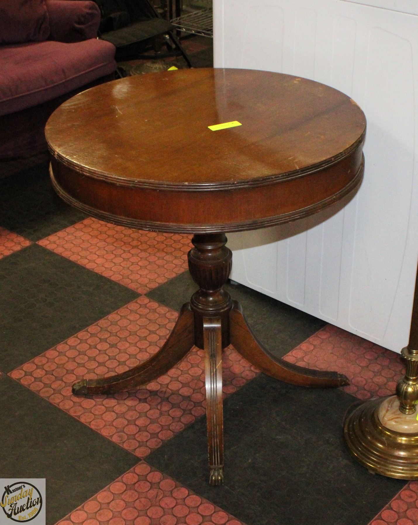 H-28" DIAMETER-26" *DRAWER IS STUCK SHUT* *MISSING 2 BRASS CLAW FOOTIES* **ALL ITEMS MUST BE REMOVED BY 5PM SATURDAY, JULY 26th 2025. ALL REMAINING ITEMS WILL BE SUBJECT TO A $6.00 PER DAY STORAGE CHARGE. ANY ITEMS REMAINING AFTER MONDAY, AUGUST 11TH 2025 WILL BE CONSIDERED FORFEITED. NO REFUNDS WILL BE ISSUED FOR FORFEITED ITEMS. TO SCHEDULE A PICK UP APPOINTMENT CLICK HERE