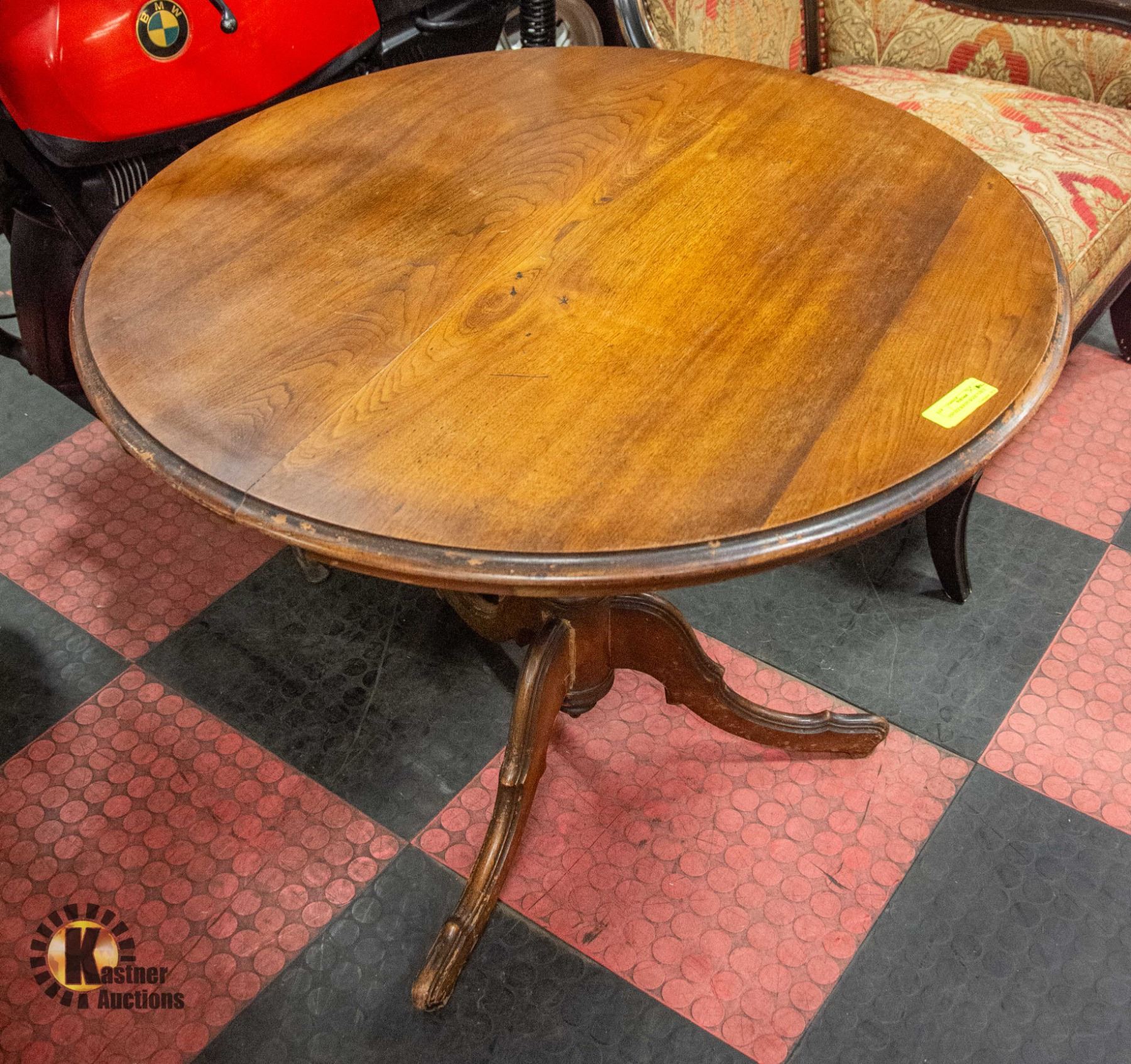 VINTAGE ROUND WOOD TABLE 36" X 29"