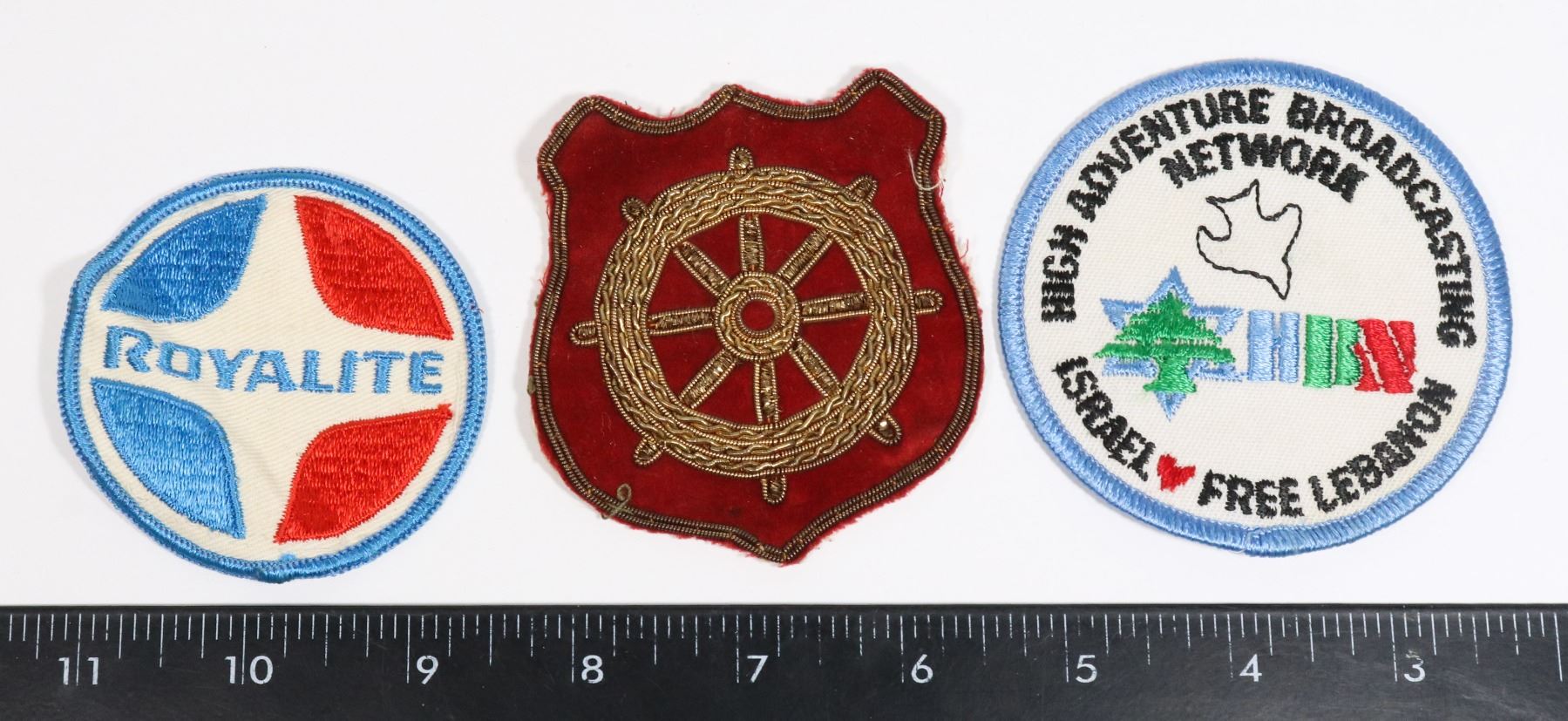 SOLD WITH VINTAGE EMBROIDERED WHEEL SHIELD PATCH, ISRAEL FREE LEBANON BROADCASTING PATCH