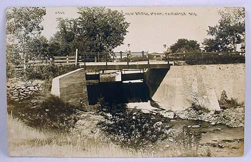 VINTAGE RPPC REAL PHOTO POSTCARD MEN ON NEW BRIDGE AND DAM, FAIRWATER, WI