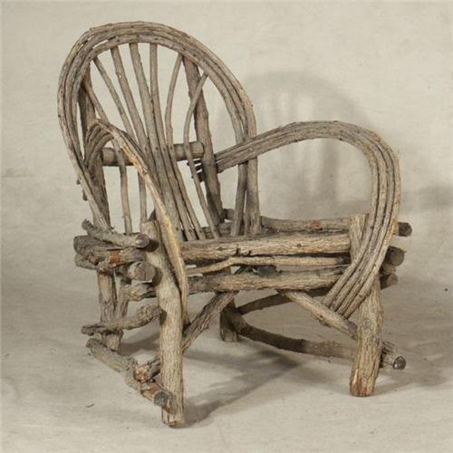 ARMCHAIR: Vintage rustic twig and branch armchair, nice weathered finish.