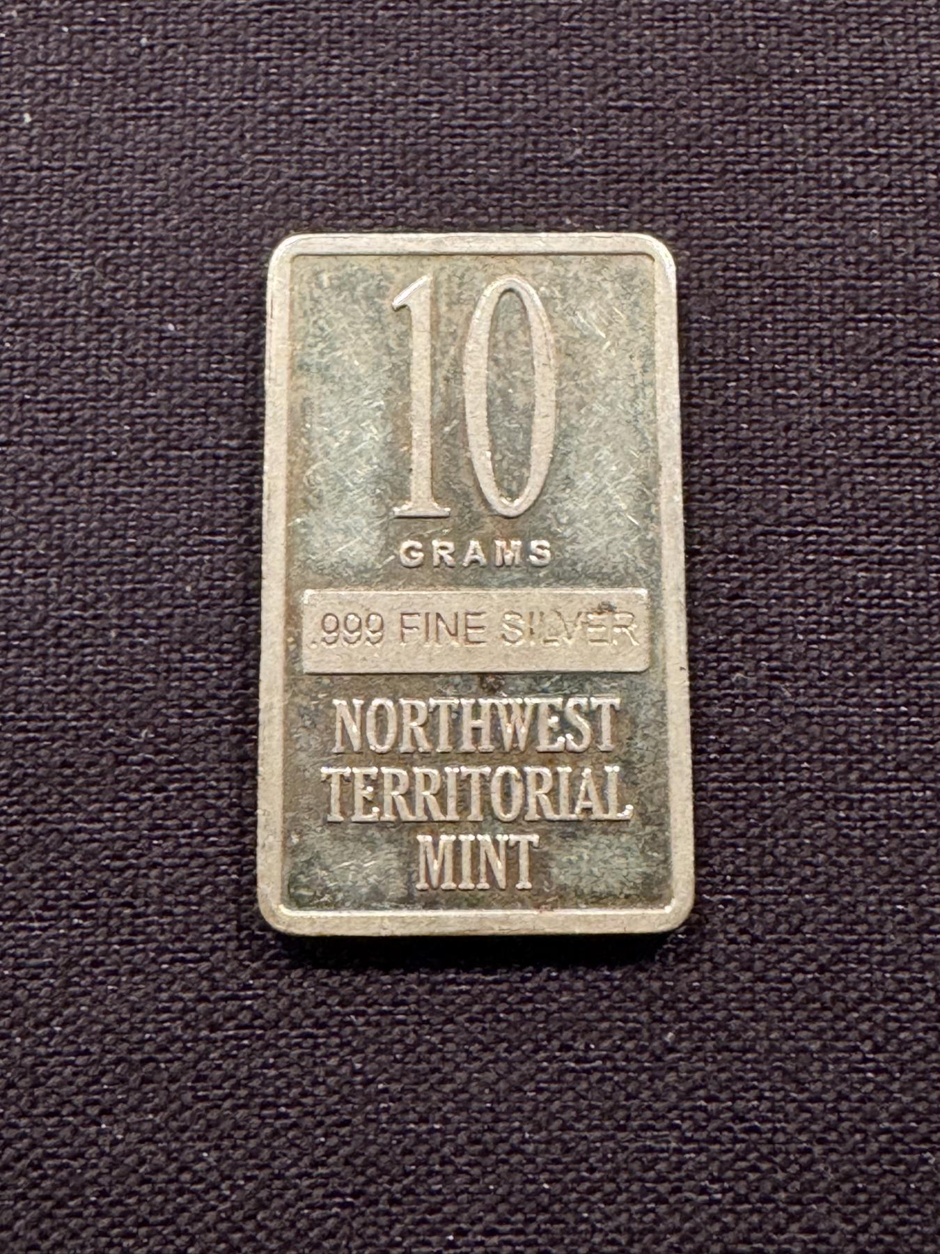 VINTAGE Rare Northwest Territorial Mint 10 Gram .999 Fine Pure Silver Bar - Mint Condition