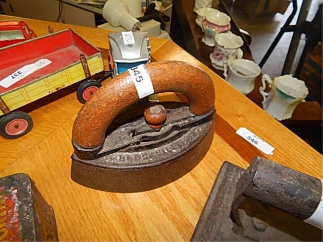 VINTAGE SAD IRON WITH WOOD HANDLE