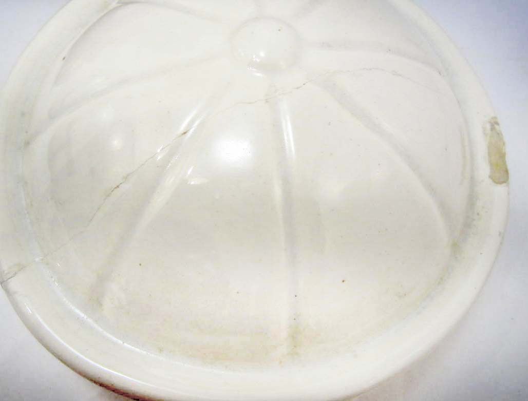 11" tall. Hat has a chip & a repaired crack