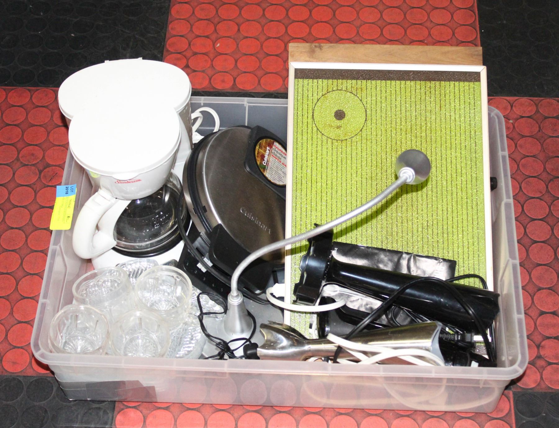 FULLY INTACT) WITH SUNBEAM COFFEE MAKER, CUISINART WAFFLE MAKER, BRAUN MULTI-QUICK 7 BLENDER + FISH PLATES + CUPS + PLUGIN TABLE LAMP **ALL PROCEEDS FROM THIS LOT WILL GO TO -IN THE WOODS ANIMAL RESCUE** **ALL ITEMS MUST BE REMOVED BY 5PM SATURDAY, JUNE 28th 2025. ALL REMAINING ITEMS WILL BE SUBJECT TO A $6.00 PER DAY STORAGE CHARGE. ANY ITEMS REMAINING AFTER MONDAY, JULY 14TH 2025 WILL BE CONSIDERED FORFEITED. NO REFUNDS WILL BE ISSUED FOR FORFEITED ITEMS. TO SCHEDULE A PICK UP APPOINTMENT CLICK HERE