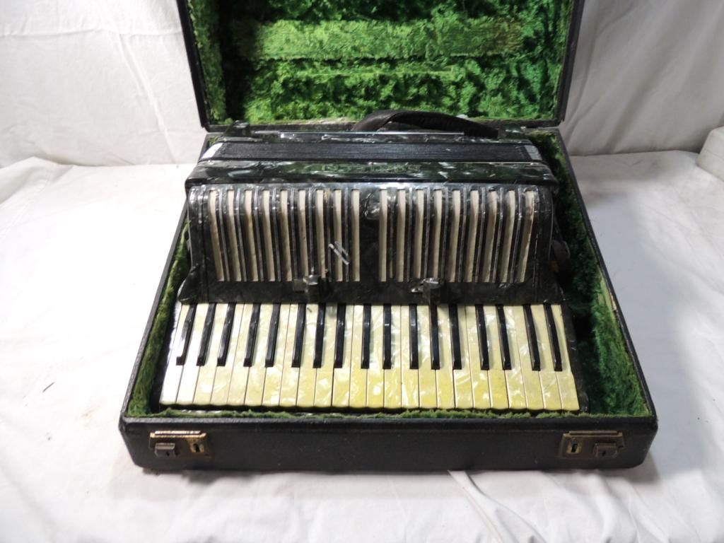 VINTAGE SANTELLI ACCORDION GREAT CONDITION. IN CASE AS SHOWN SEE PHOTO FOR MORE DETAILS.