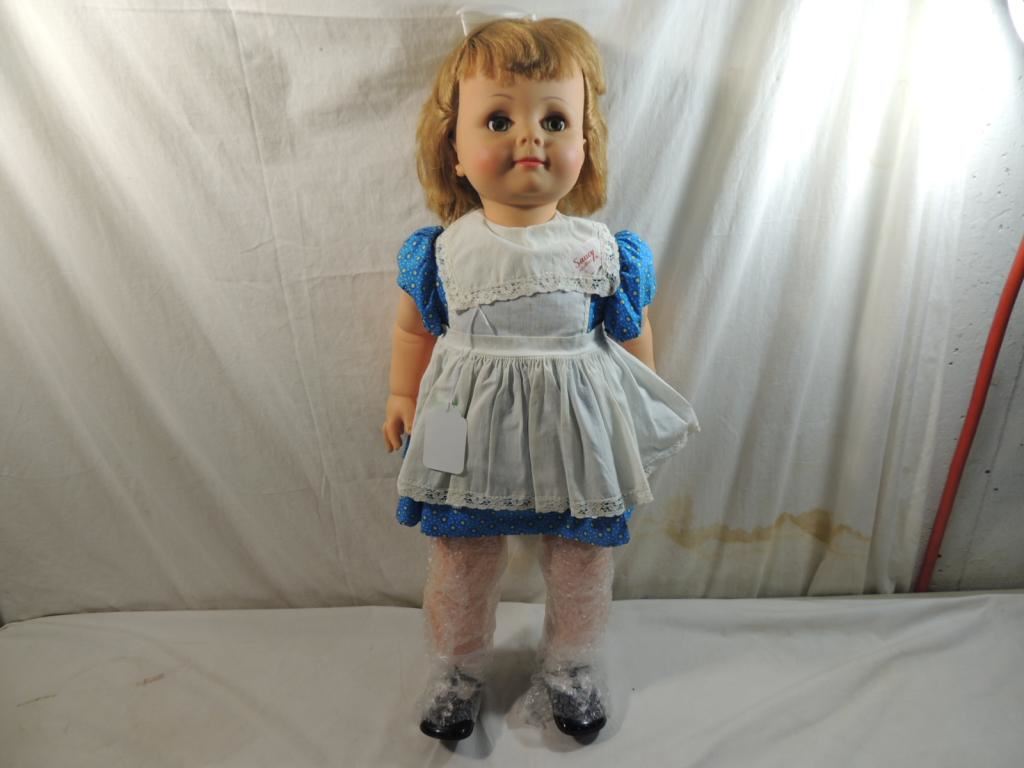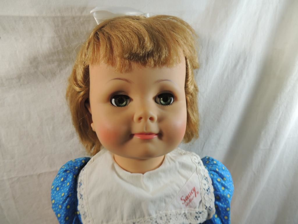 VINTAGE SAUCY WALKER DOLL, PLASTIC DOLL, ORIGINAL DRESS, VINTAGE COLLECTORS DOLL, COLLECTIBLE DOLL, AS SHOWN SEE PHOTO FOR MORE DETAILS.