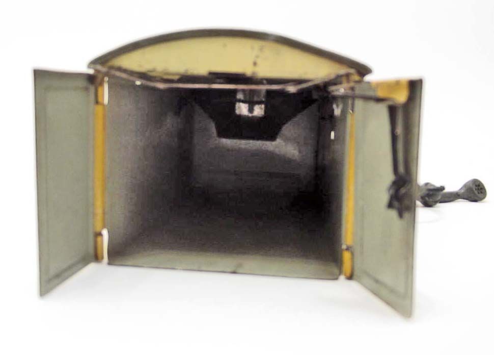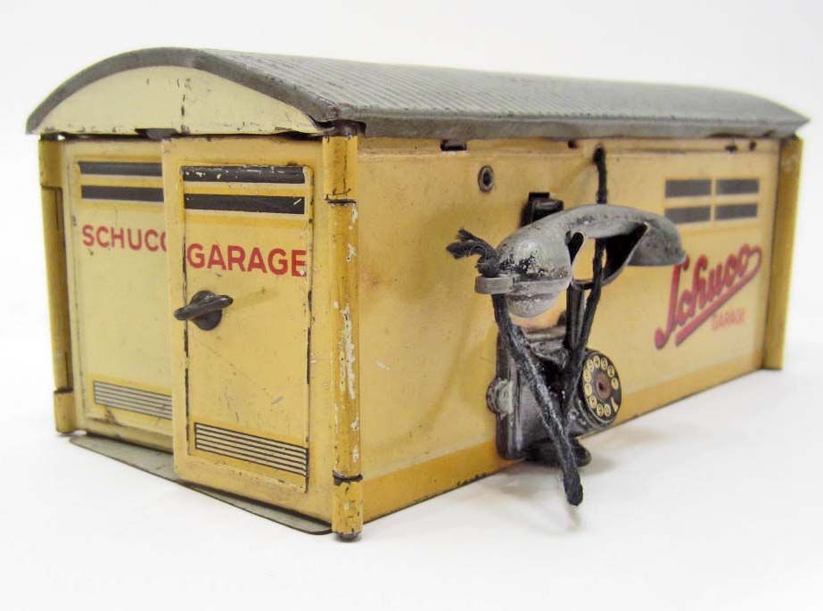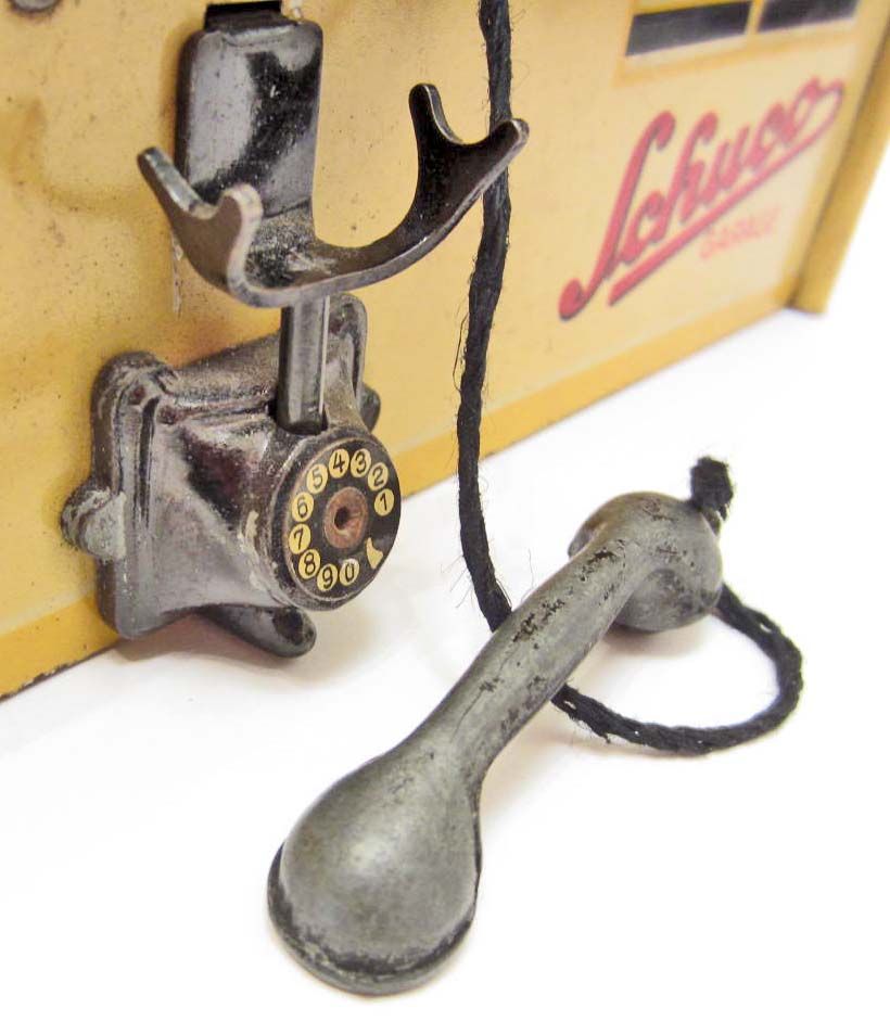 Push the Telephone down and it is supposed to open the garage. Pull the Telephone cord and it is supposed to release the wind-up car. There is NO car included and unable to test to see if this actually works. Approx. 6" long