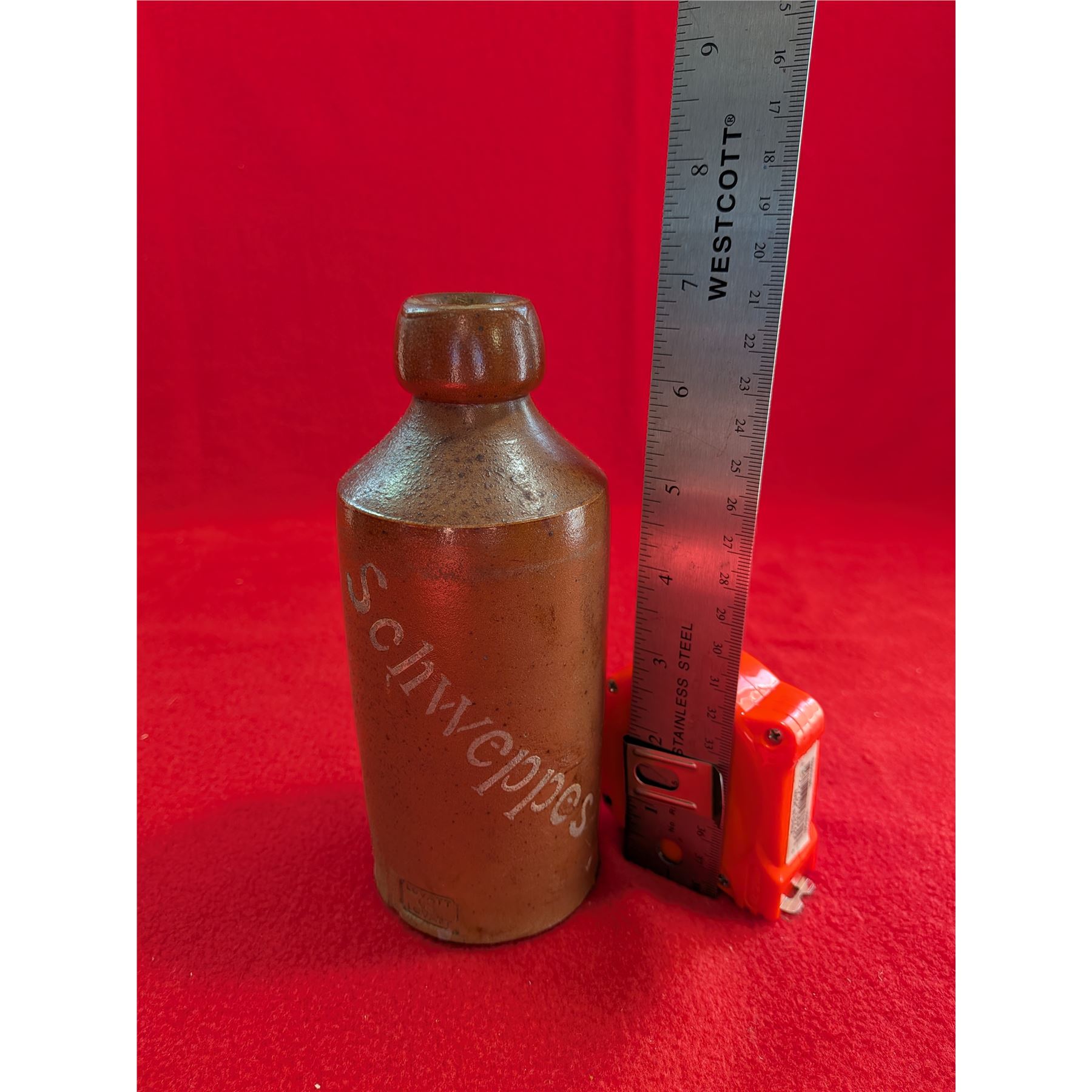 Vintage Schweppes stoneware ginger beer bottle, likely dating from the late 19th or early 20th century.