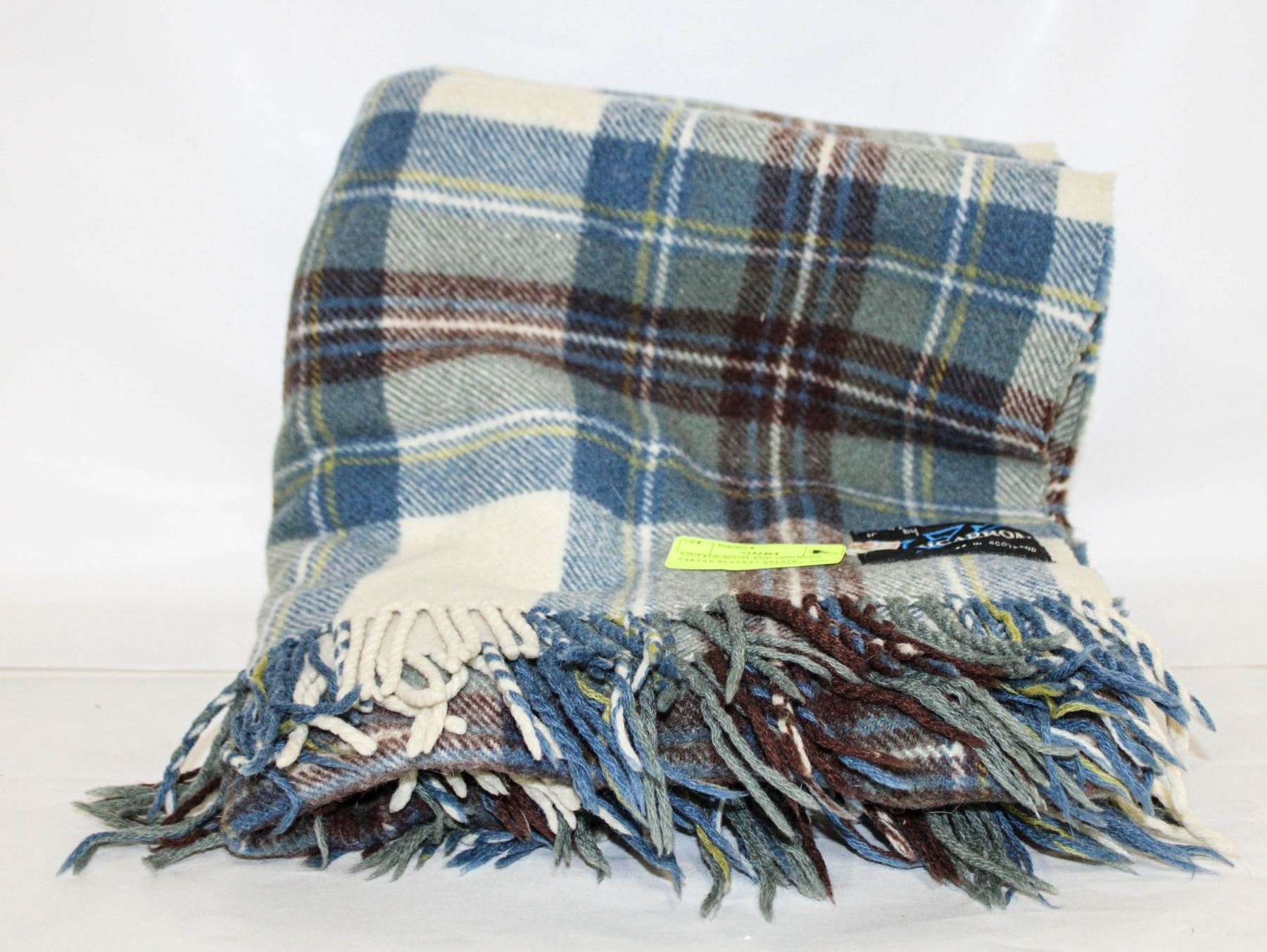 VINTAGE SCOTLAND 100% WOOL TARTAN BLANKET-ESTATE