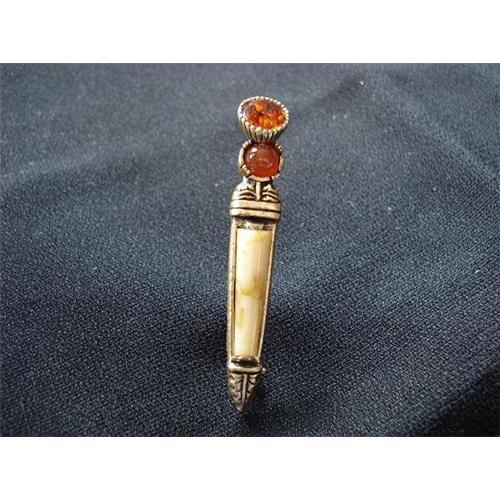 THIS IS a LOVELY VINTAGE PIECE OF JEWELRY,DEPICTING SCOTTISH THISTLE DAGGER, BROOCH,SIGNED "MIRACLE", EXCELLENT USED CONDITION,MEASURING ABOUT 2 1/2" LONG, US Buyer to pay 7.00 for shipping plus insurance.THANKS.
