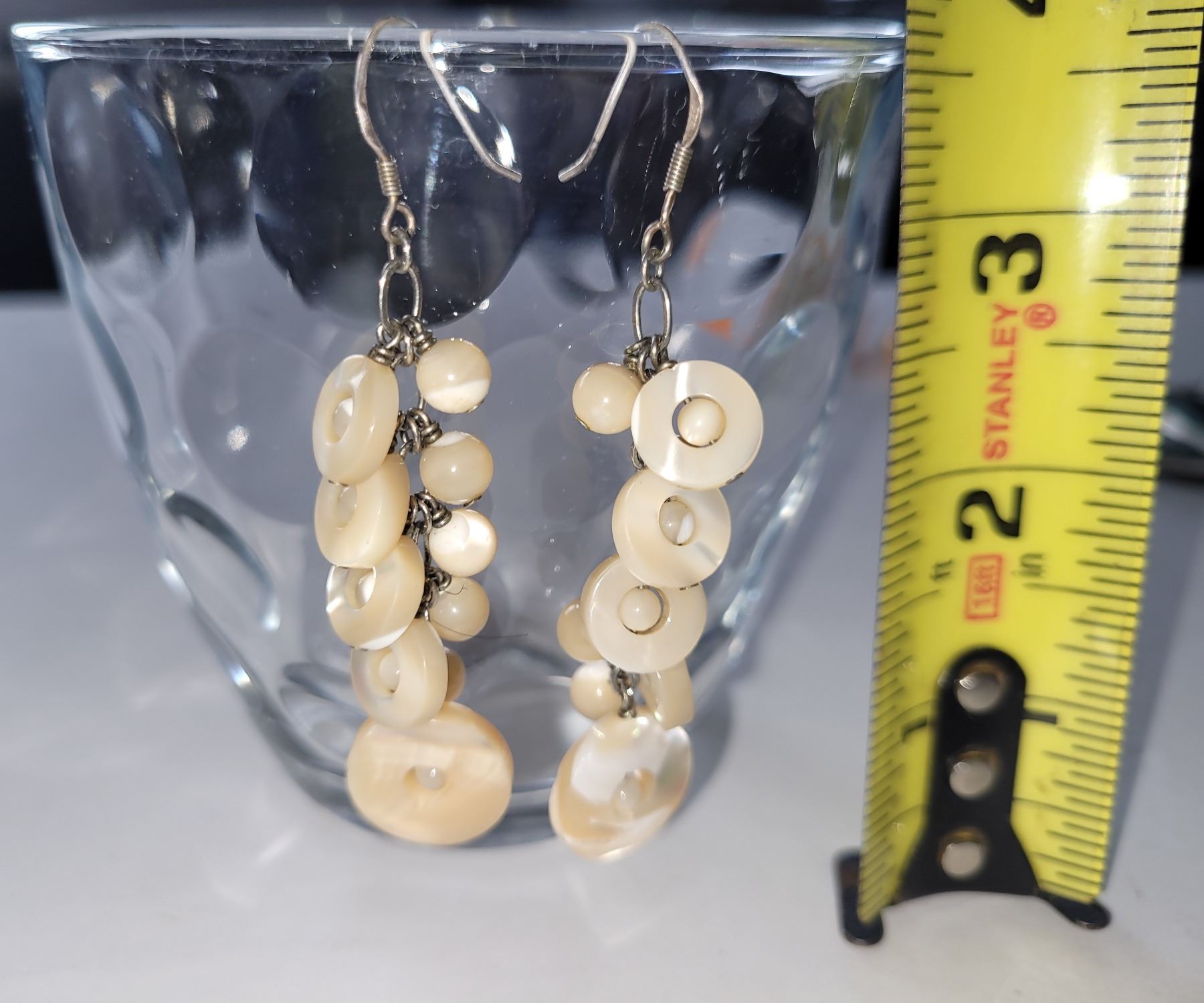 VINTAGE SEA SHELL DANGLE EARRINGS. FISH HOOK BACKING. FROM ESTATE. SEE PICTURES AND JUDGE FOR YOURSELF!