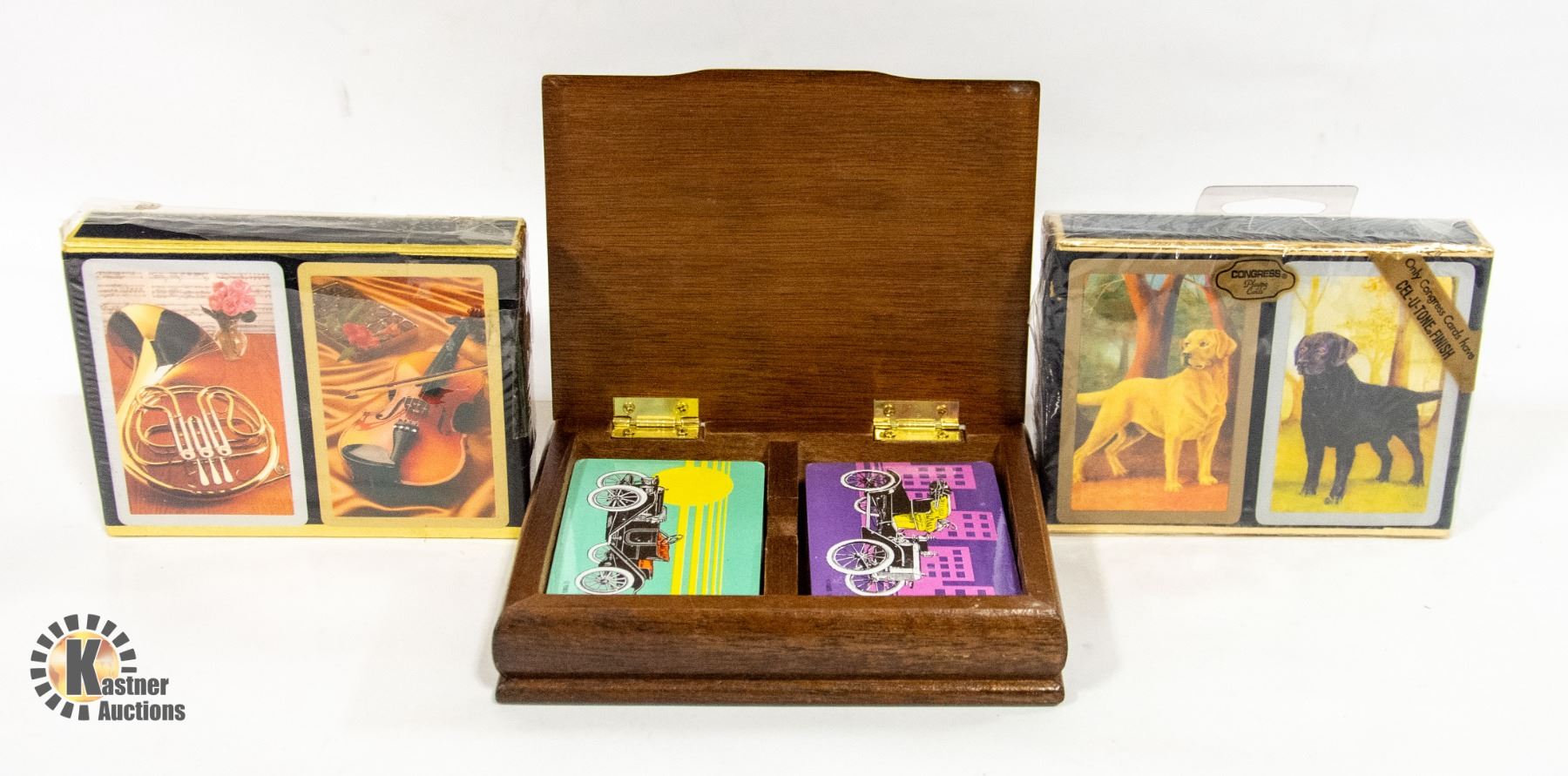 CEL-U-TONE FINISH PLAYING CARD'S GOLDEN TRIEVERS & INSTRUMENTS MADE IN SPAIN W/SEALED 1985 ANTIQUE PLAYING CARDS IN WOODEN BOX **ALL ITEMS MUST BE REMOVED BY 5PM SATURDAY, OCTOBER 28TH 2023. ALL REMAINING ITEMS WILL BE SUBJECT TO A $6.00 PER DAY STORAGE CHARGE. ANY ITEMS REMAINING AFTER MONDAY, NOVEMBER 13TH, 2023 WILL BE CONSIDERED FORFEITED. NO REFUNDS WILL BE ISSUED FOR FORFEITED ITEMS. TO SCHEDULE A PICK UP APPOINTMENT CLICK HERE