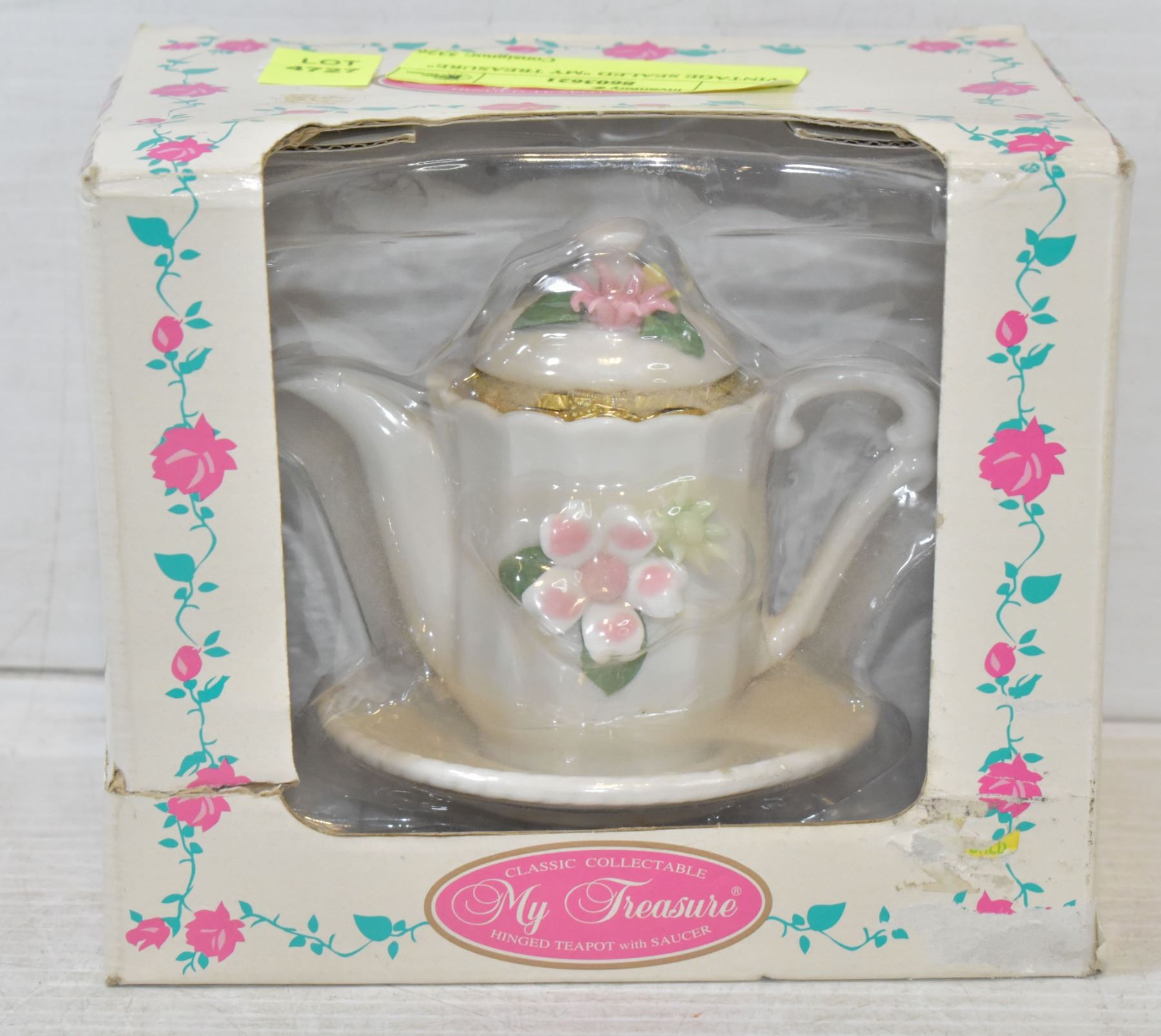 CLASSIC COLLECTABLE HINGED TEAPOT & SAUCER