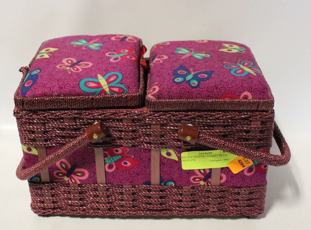 VINTAGE SEWING BASKET PLUS CONTENTS