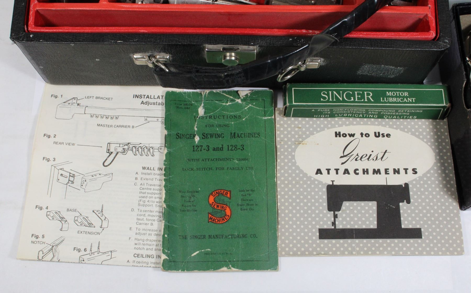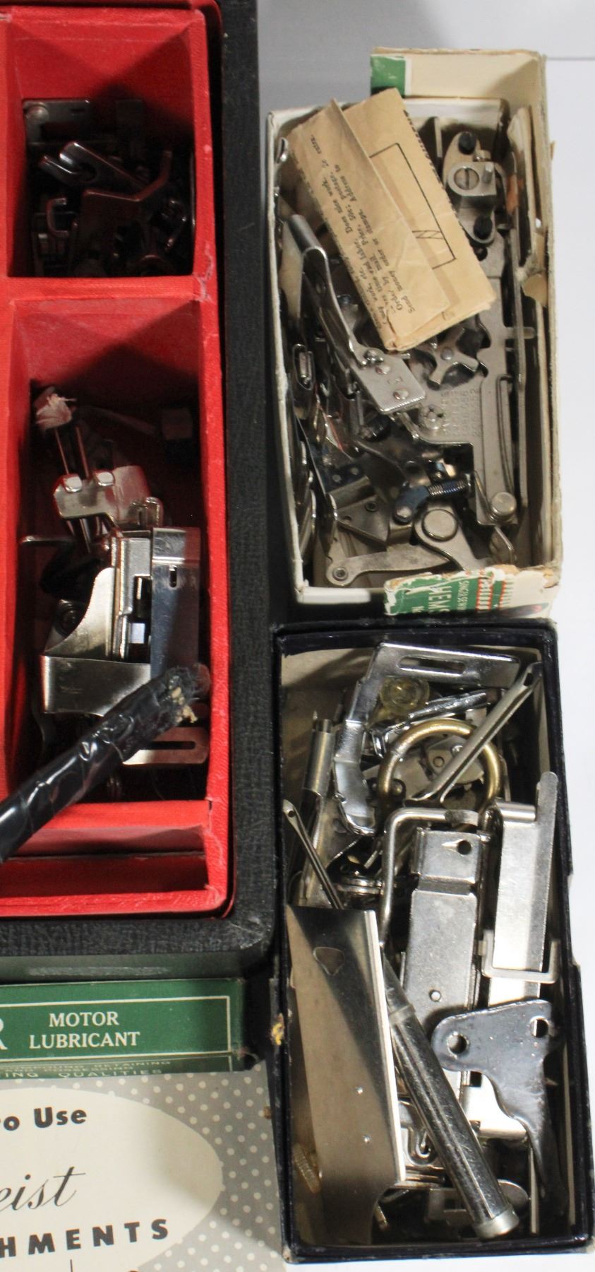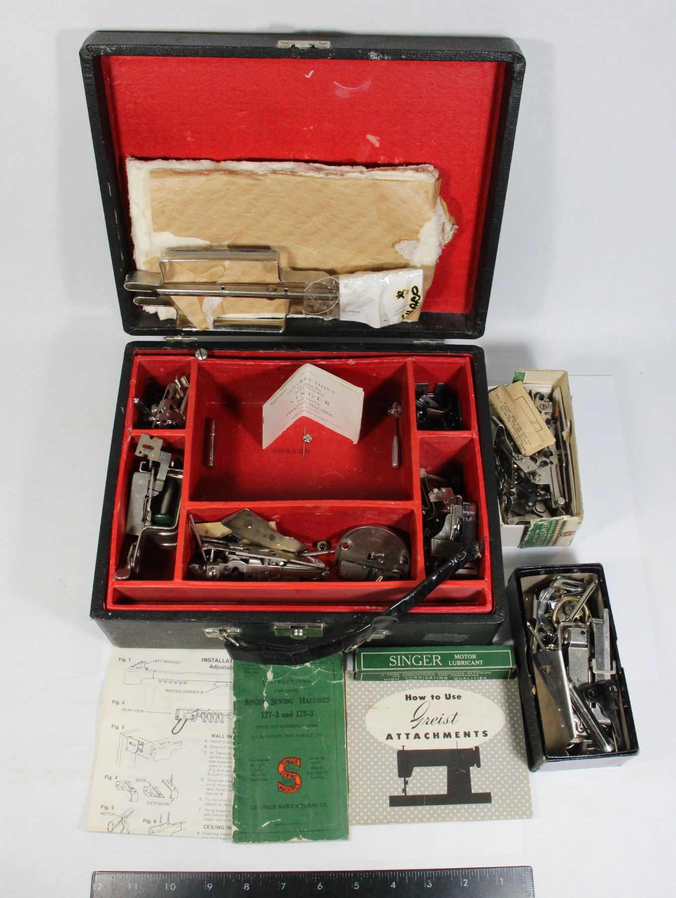 SINGER, INCLUDES SOME GREIST ATTACHMENTS, L23XW29XH10CM.