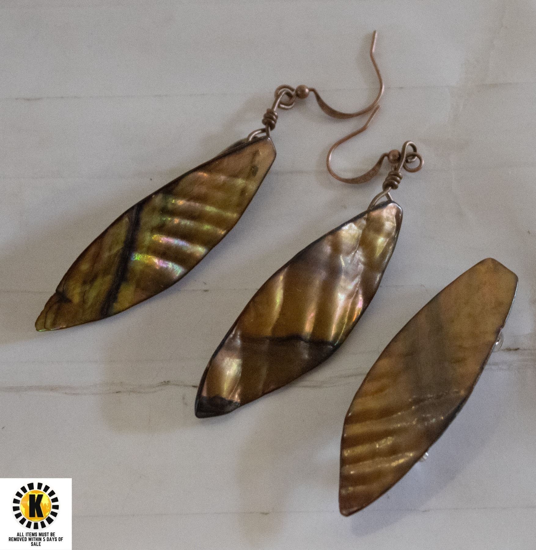 VINTAGE SHELL EARRINGS AND BROOCH SET