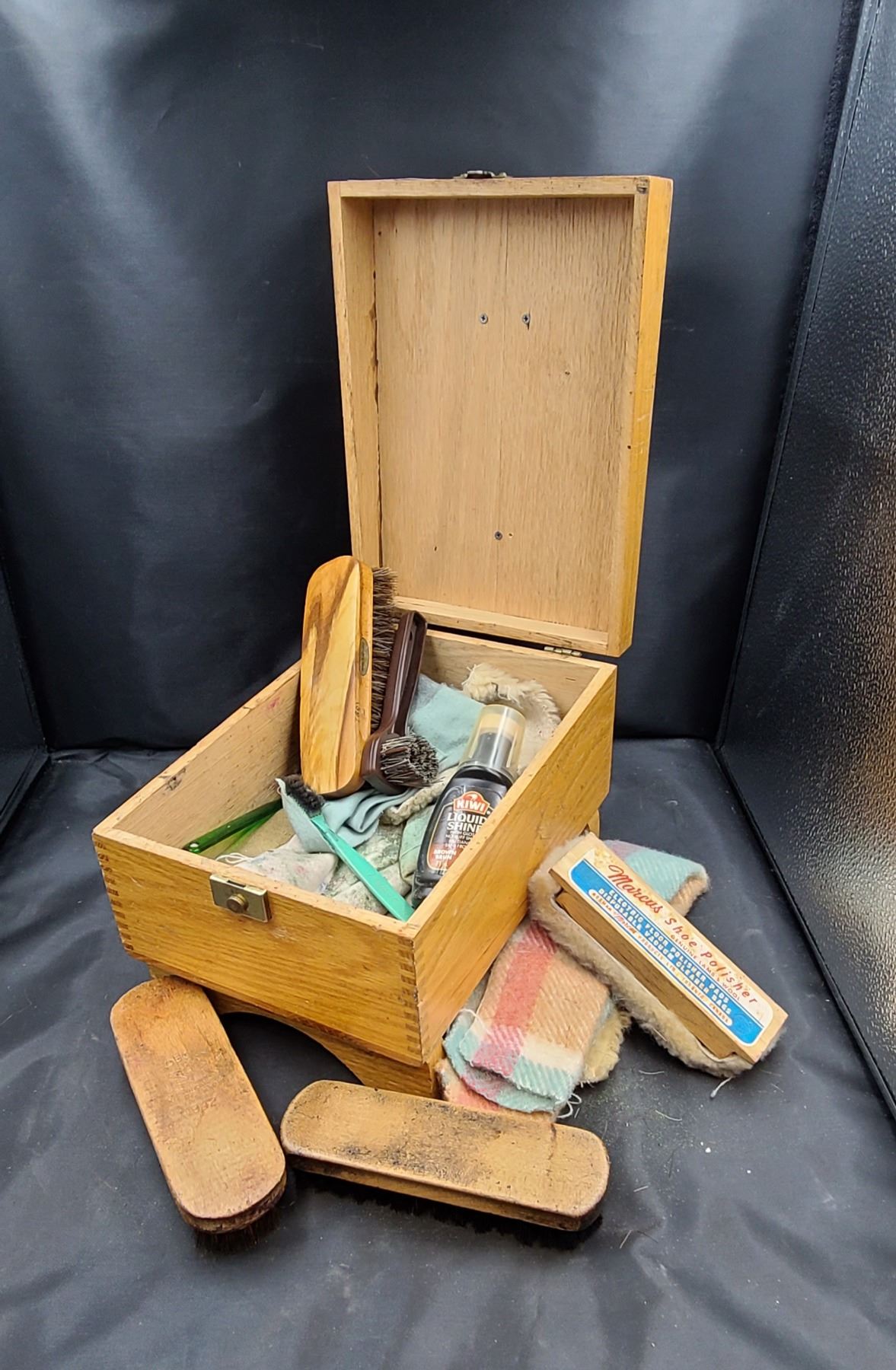 VINTAGE SHOE SHINE BOX W/CONTENTS
