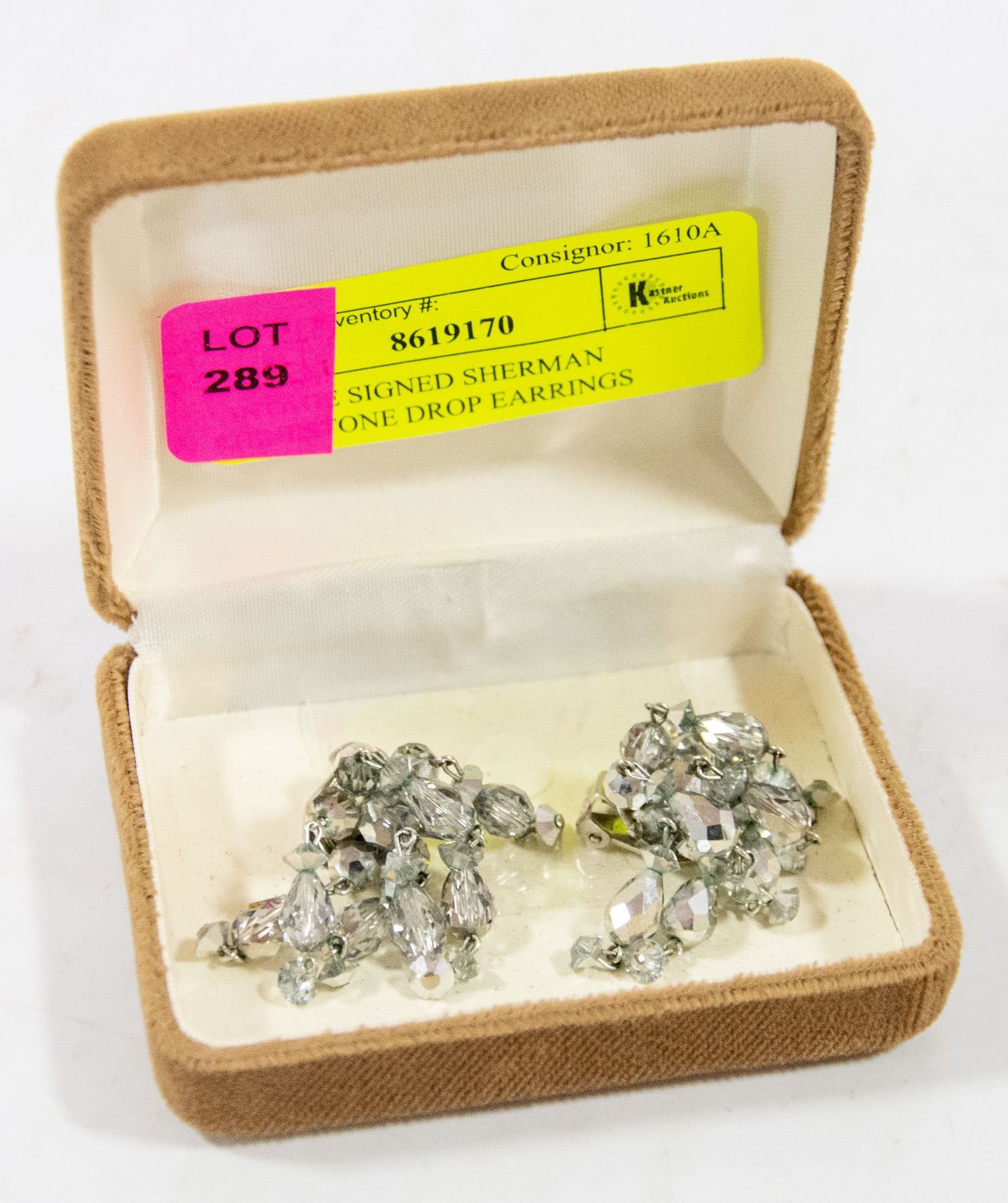 VINTAGE SIGNED SHERMAN RHINESTONE DROP EARRINGS