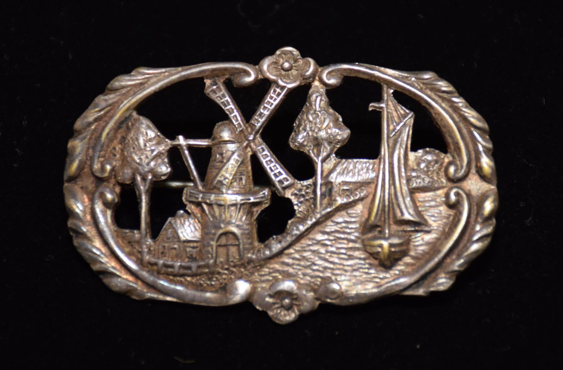 VINTAGE SILVER DUTCH SCENE BROOCH