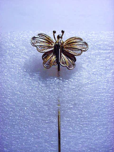 VINTAGE SILVER FILIGREE BUTTERFLY STICK PIN VERY GOOD CONDITION