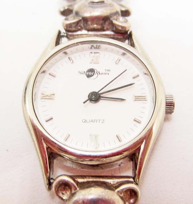 Backside of the Teddy Bear Bracelet reads Sterling .925 in several places. The watch face is Stainless & Alloy