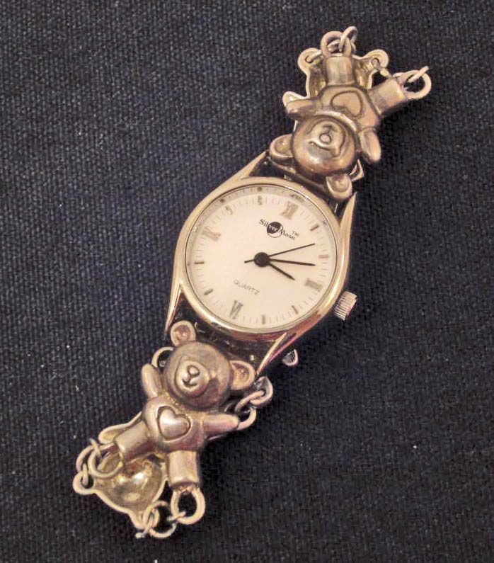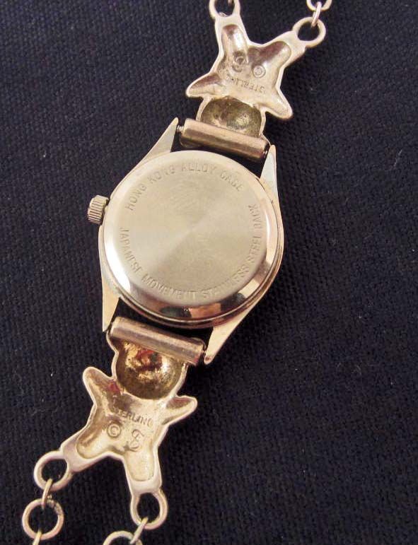 Backside of the Teddy Bear Bracelet reads Sterling .925 in several places. The watch face is Stainless & Alloy