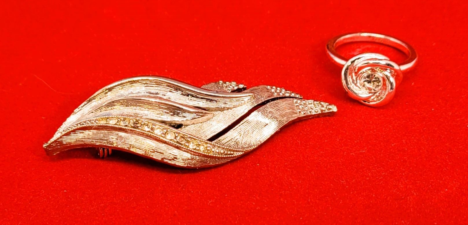 CLEAR CRYSTAL ACCENTS, 2.75" , SIZE 6 ROSE FLOWER RING. JEWELLERY