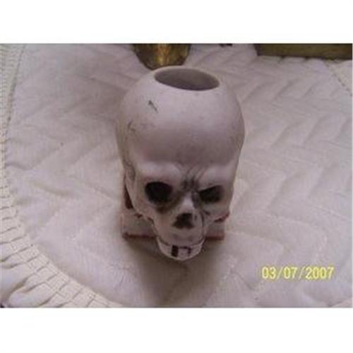 Up for sale is a really cool Vintage Skeleton Toothpick Holder. This guy is so ugly he?s cute! His mouth opens and closes. His head sits on what appears to be a book. He was made in Japan. It?s marked on the bottom made in Japan. His overall condition is good for its age.