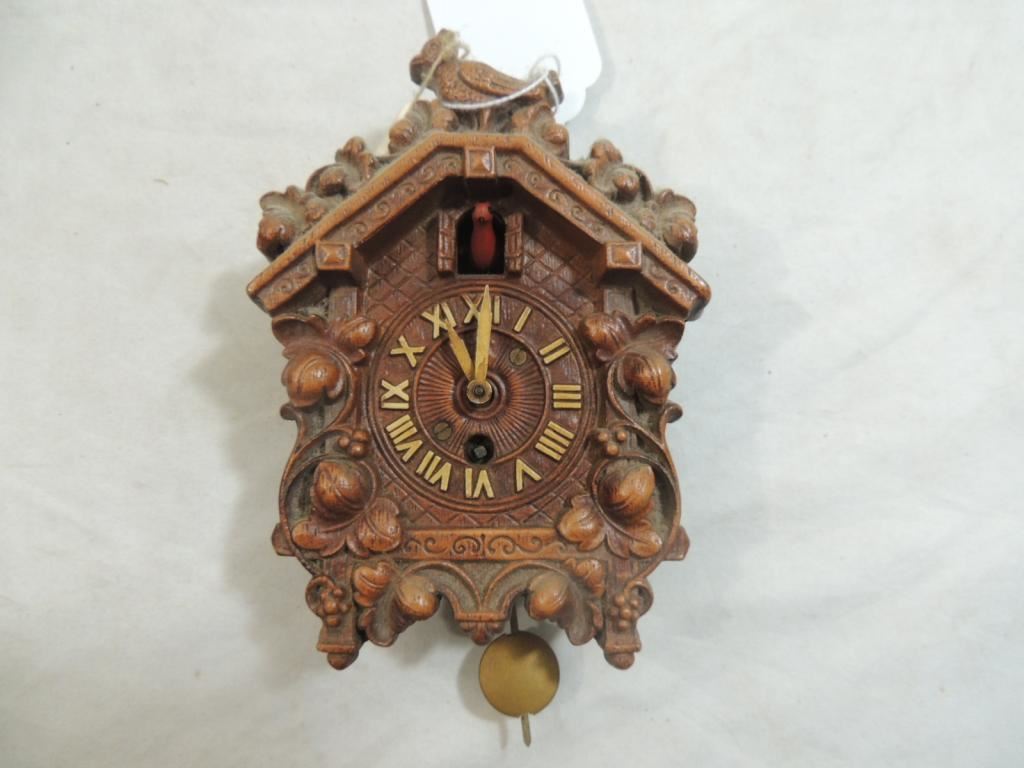 MADE IN GERMANY, VINTAGE BLACK FOREST CLOCKS, AMAZING DETAIL, COO COO CLOCK, MINI CLOCK, SMALL COCKOO CLOCK, COLLECTIBLE, COLLECTORS CLOCK, AS SHOWN SEE PHOTO FOR MORE DETAILS.