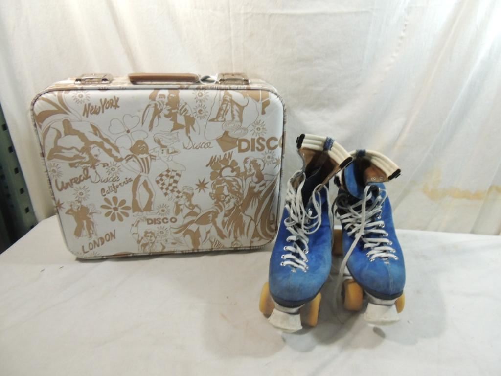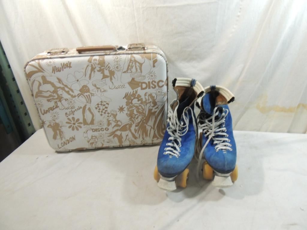 VINTAGE TRAVEL SUIT CASE, DECORATIVE SUITCASE, TRAVEL CASE, AS SHOWN SEE PHOTO FOR MORE DETAILS.