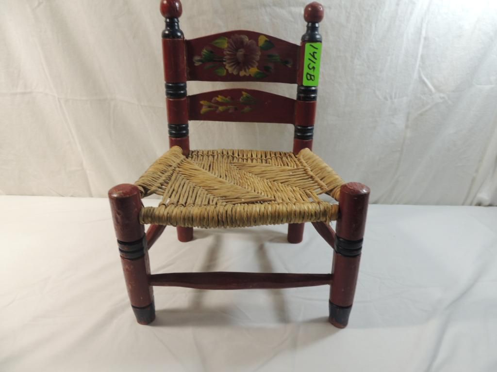 HAND PAINTED RATTAN SEAT CHAIR VINTAGE CHILDRENS CHAIR AS SHWON SEE PHOTO FOR MORE DETALIS.