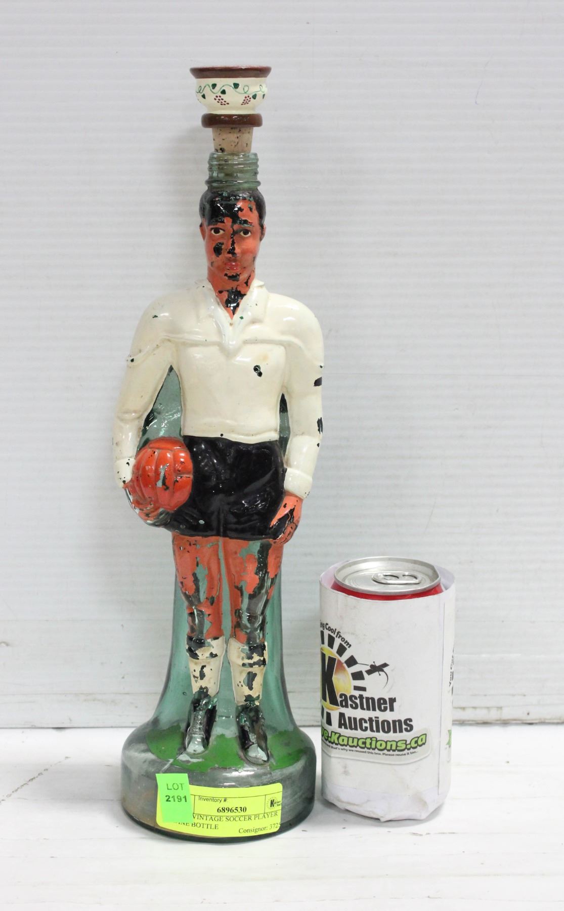 VINTAGE SOCCER PLAYER WINE BOTTLE