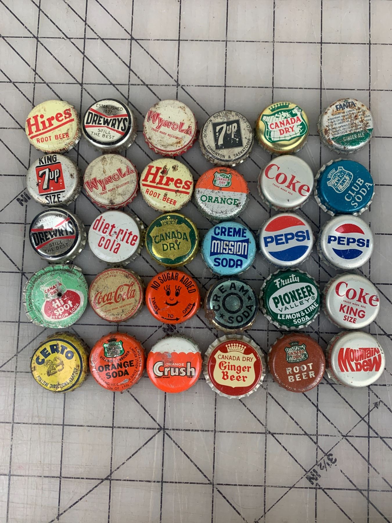 VINTAGE SODA POP CAPS MOST ARE CORK LINED