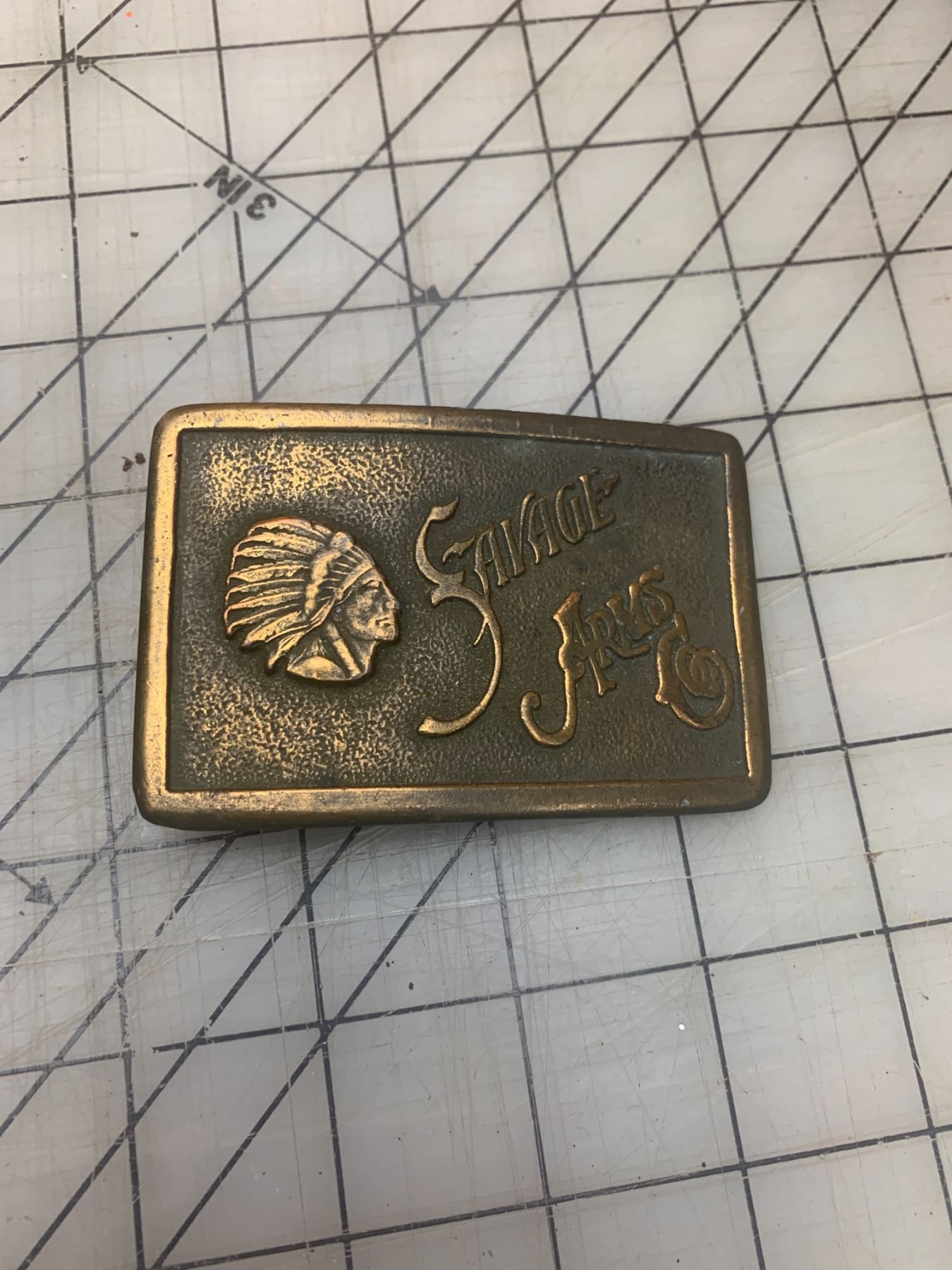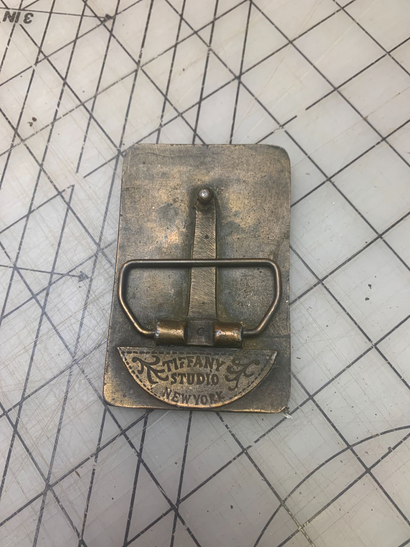 VINTAGE SOLID BRASS TIFFANY STUDIO NW YORK ADVERTISING SAVAGE ARMS BELT BUCKLE