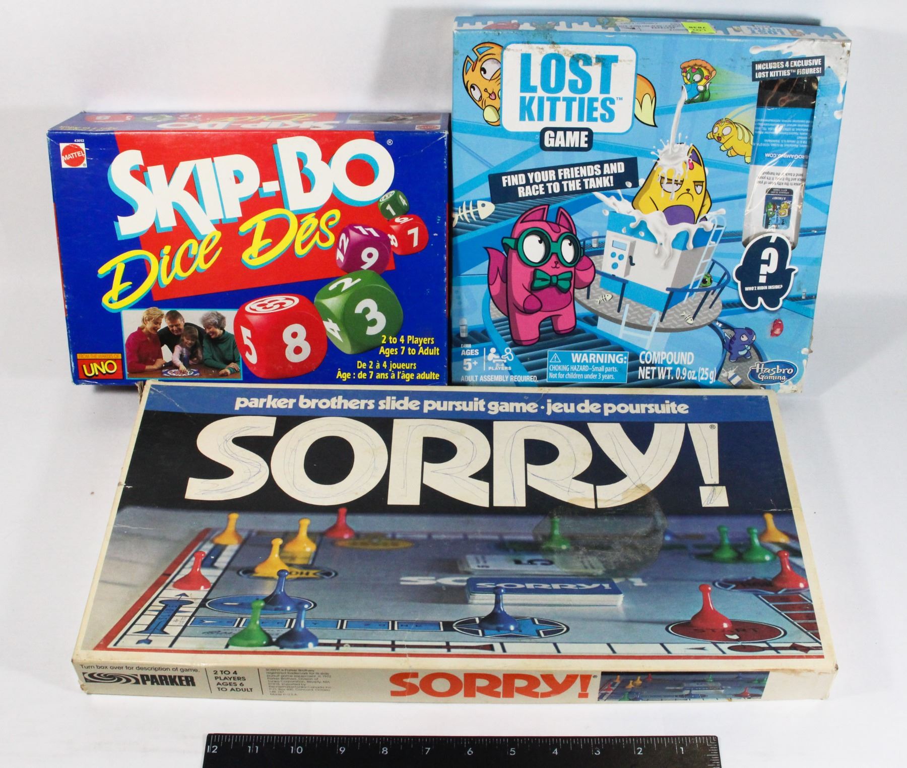 VINTAGE SORRY, SKIP-BO DICE AND LOST KITTIES