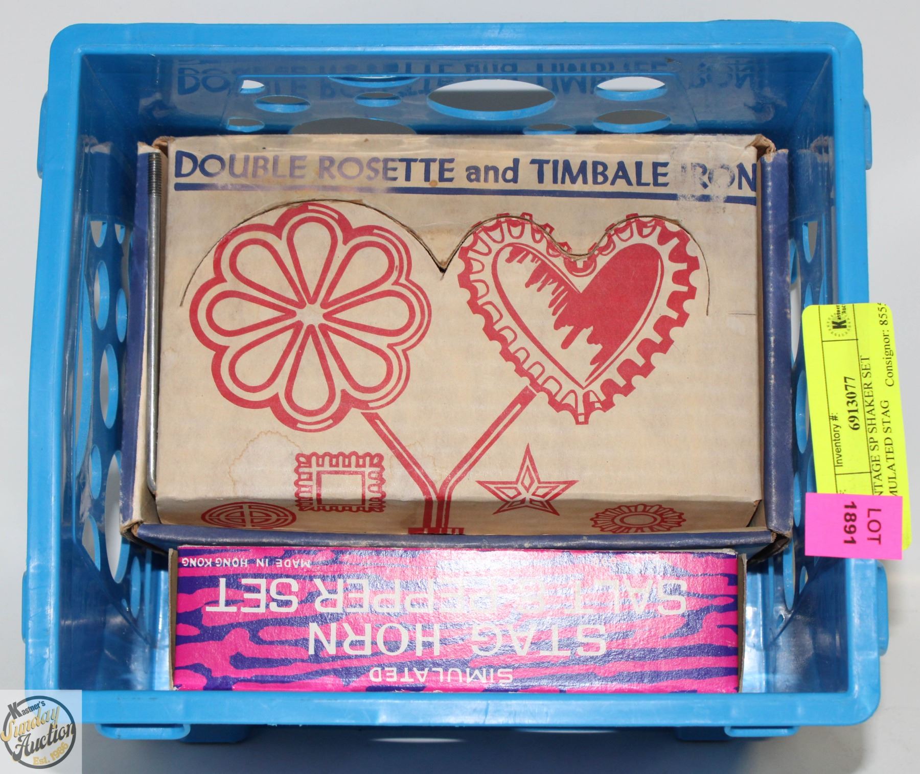 HORNS + NORDIC WARE DOUBLE ROSETTE AND TIMBALE IRON PATTY SHELL UNUSED IN ORIGINAL BOXES **ALL ITEMS MUST BE REMOVED BY 5PM SATURDAY, MAY 10TH 2025. ALL REMAINING ITEMS WILL BE SUBJECT TO A $6.00 PER DAY STORAGE CHARGE. ANY ITEMS REMAINING AFTER MONDAY, MAY 26TH 2025 WILL BE CONSIDERED FORFEITED. NO REFUNDS WILL BE ISSUED FOR FORFEITED ITEMS. TO SCHEDULE A PICK UP APPOINTMENT CLICK HERE